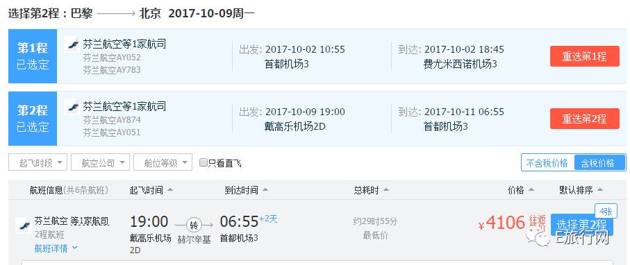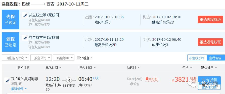 西安飞巴黎价格也很好,往返含税仅需3821元