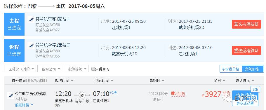 暑假同样有票,正暑假,重庆往返巴黎,含税3927元