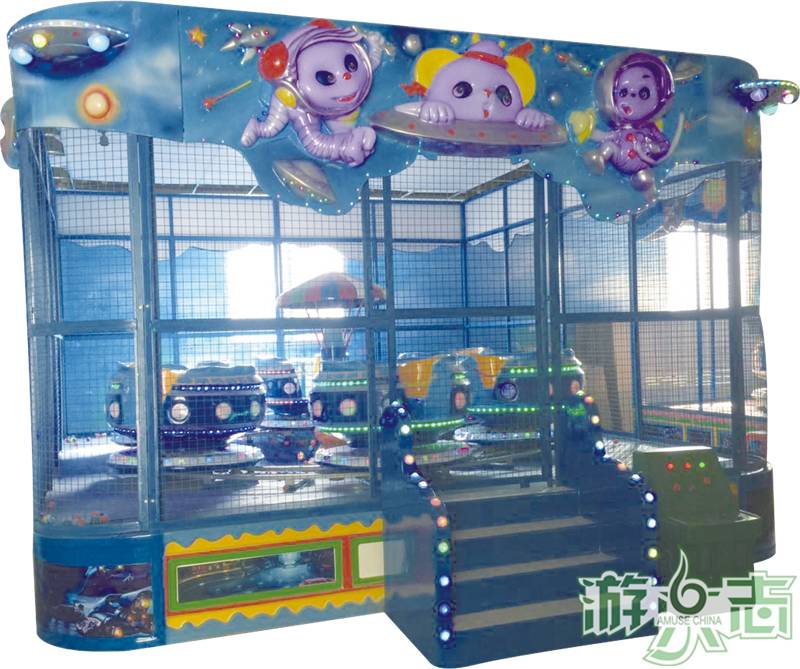 你们见过沿着既定轨道运行的太空杯吗?好乐欣最新推出的《太空奇幻之旅 喷球池》,将太空杯与喷球池、轨道结合了起来!在半封闭式的蓝色网屋里,有着一群正在捉迷藏的外星人、一座随时准备爆发的喷球池以及几座准备起航的蓝色太空杯。起航就绪的太空杯能帮助小朋友们寻找外星人,只要小朋友能从喷球池喷出的小球内获得足够的能量,它们就能在彩灯的照耀下,找到隐藏的外星人哦!