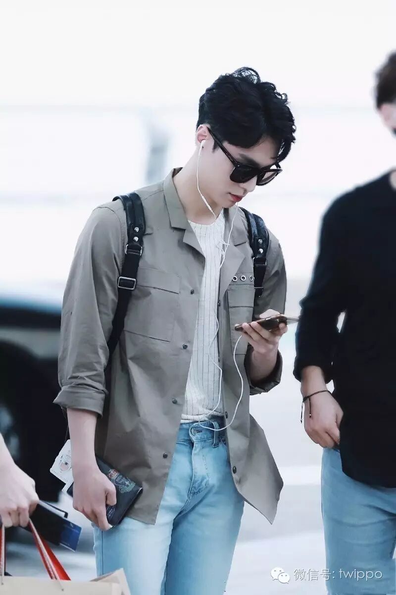 机场的他,从来不随意。时而精心搭配,连发型也丝毫不马虎。