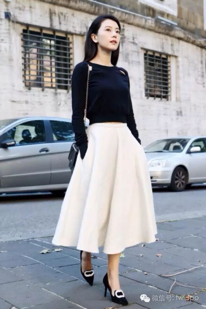 百褶长裙拉长腿部视觉的同时柔化整个人的线条,让你像仙女一样飘来飘去,配起运动鞋来更添几分随意。