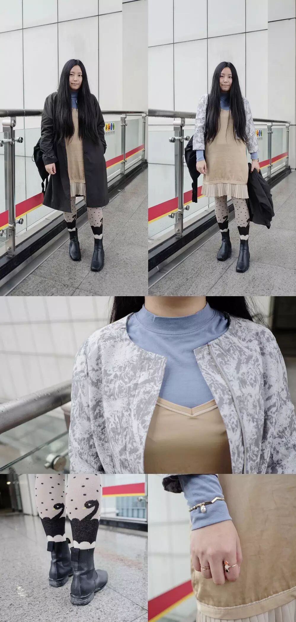 由于气温关系,在新买的长款风衣内还搭配了一件短夹克,大理石纹路让身上的颜色不再单调。同时像在一身中打造了两个造型。