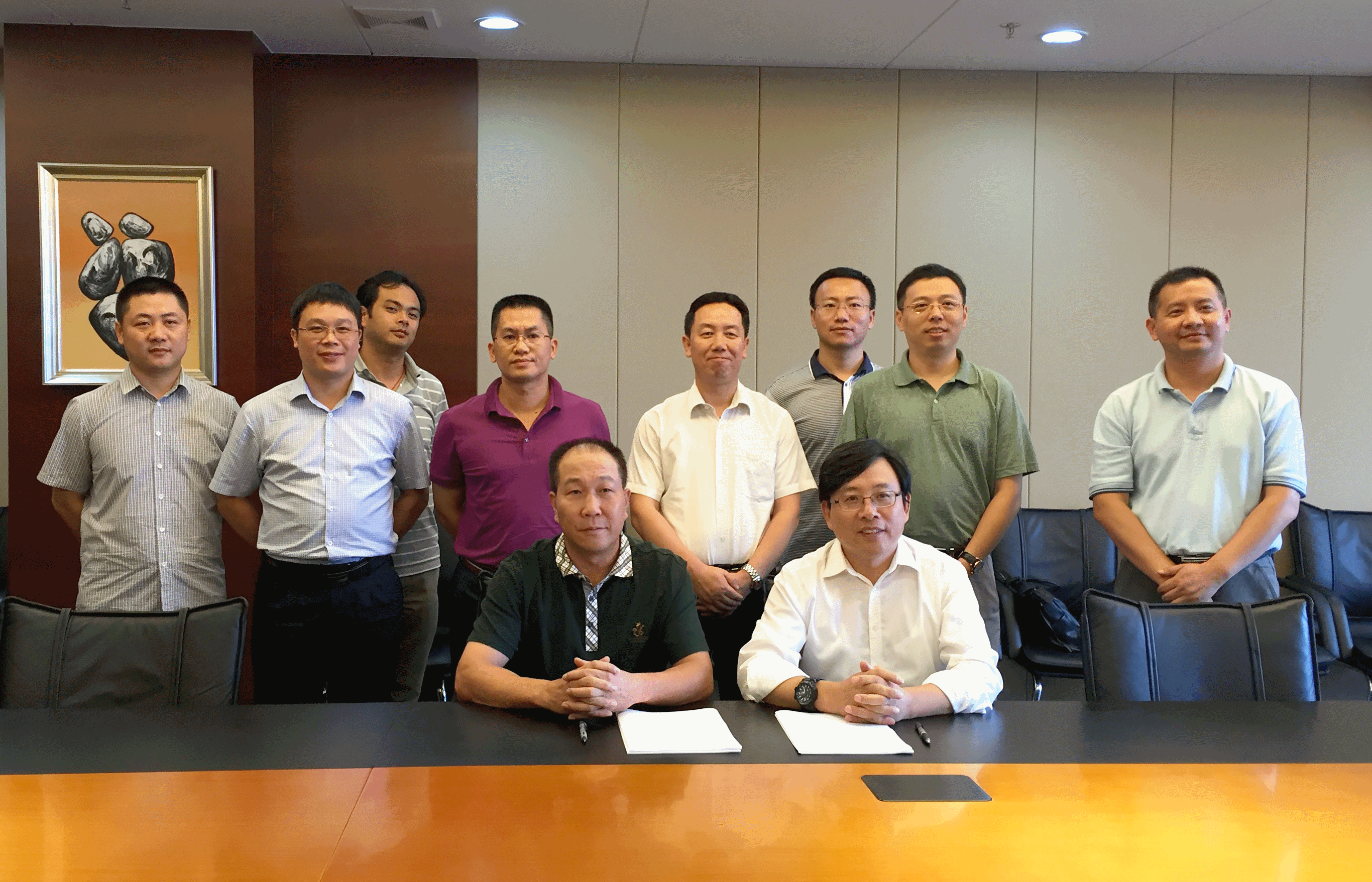 光庭信息董事长朱敦尧博士(右)与中海达董事长廖定海签署合作协议