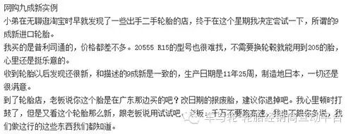 网购轮胎可能出现什么问题?网购轮胎已经从最初的引人疑窦到逐渐被人所接受,网购轮胎的车主在这几年增长的非常快,轮胎电商也在想尽各种办法解决轮胎售后安装等问题,但从上面这件事我们不难发现,网上的各种陷阱依然存在,对于各位不懂轮胎的车主来说,真的是傻傻分不清楚了,今天我们就再来为大家总结一下网购轮胎可能存在的陷阱:
