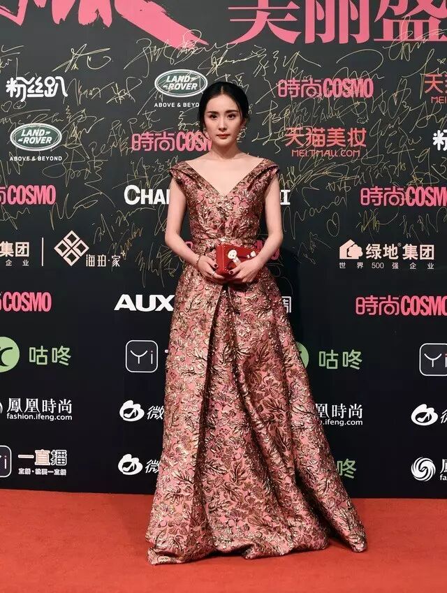 杨幂不久前在出席某活动时就穿了一件件暗雪松色的V领礼服,相较于平时的少女装扮,这身更具典雅韵味。