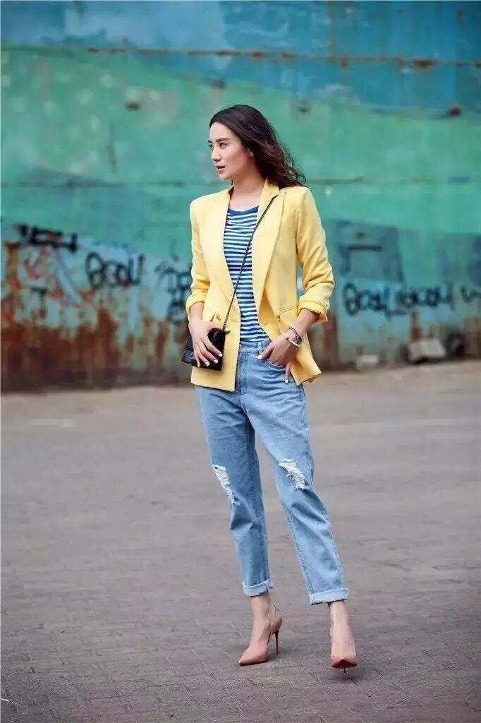 西装外套素来是用来打造干练知性范的必备单品,而宋佳的这件芥末黄西装外套,则更多了几分明媚活力和街头潮范,非常养眼吸睛。
