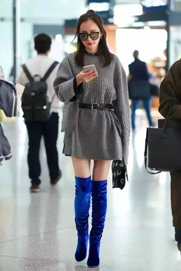 作为时下最受触目的街拍女王,杨幂在秋冬的机场街拍中就曾多次穿着鲨鱼灰毛衣出境,帅气又不失女人味。