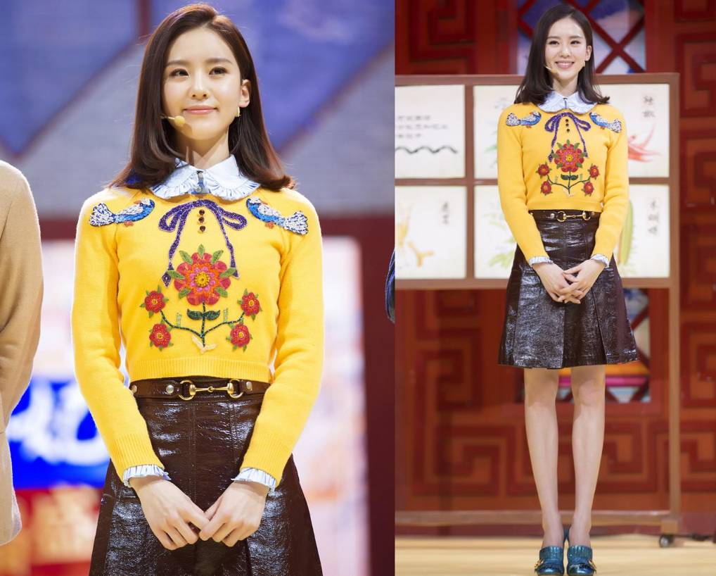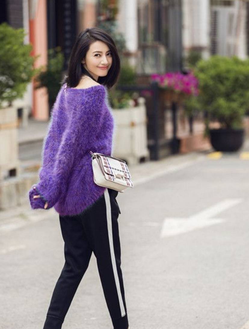 高圆圆马海毛毛衣的软糯感配上粉紫色的柔情,真的美极了。