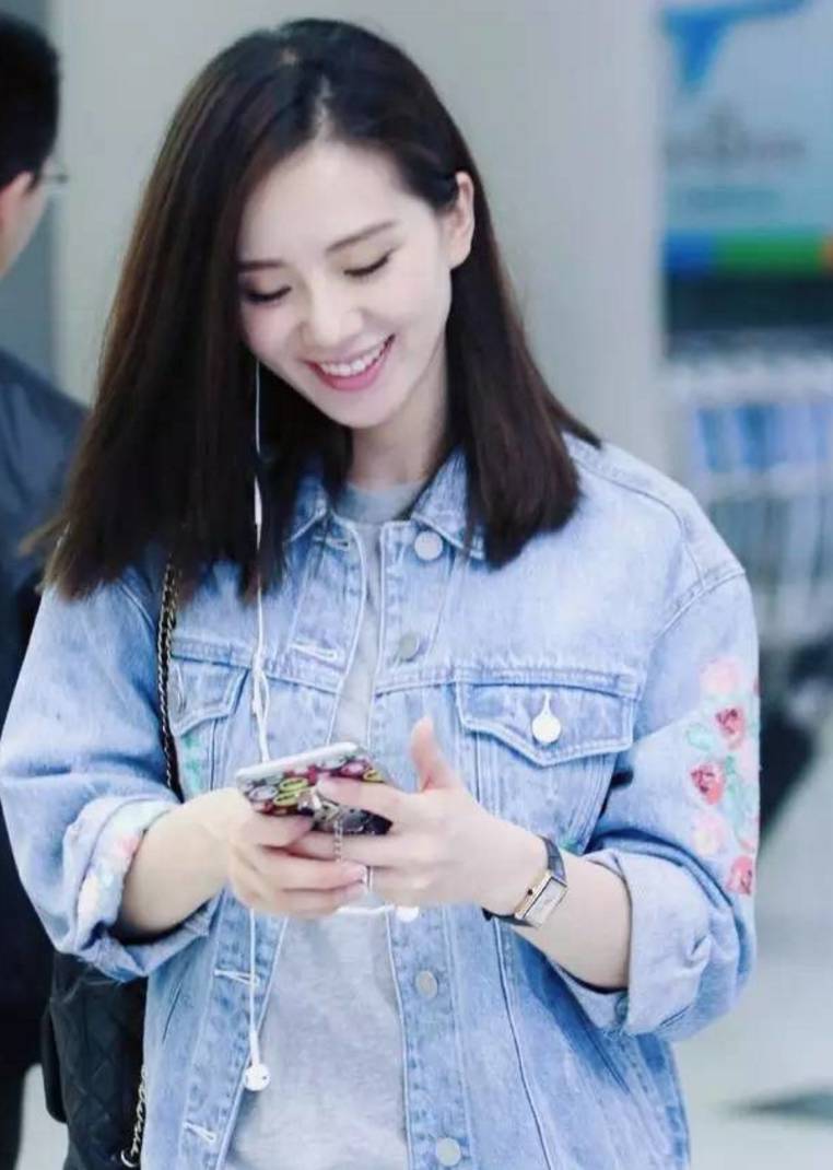 刘诗诗用空气蓝牛仔外套搭配灰色打底衫,时髦养眼得恰到好处。