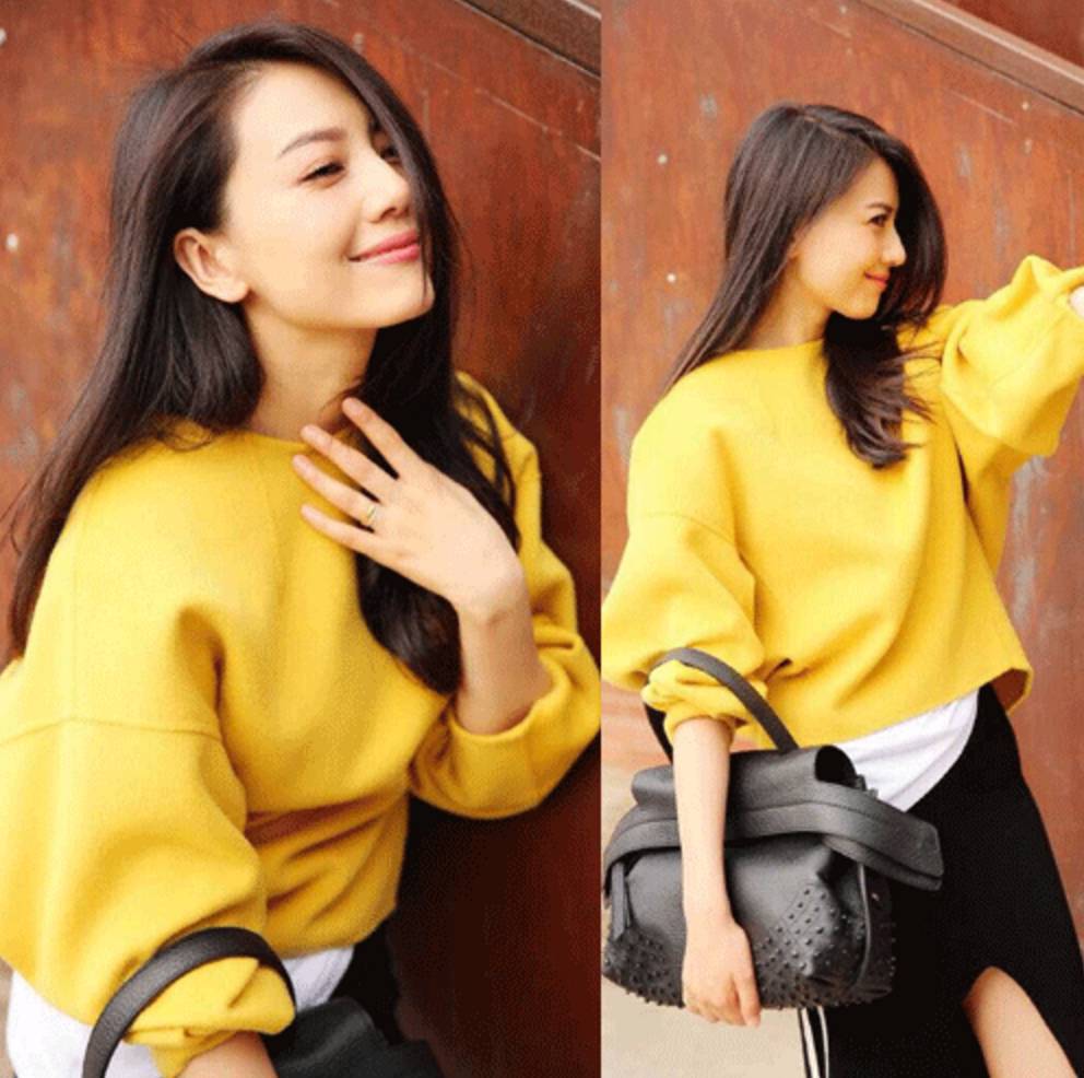 袁姗姗则用雪松色卫衣搭配流苏边牛仔裤,复古又够chic。