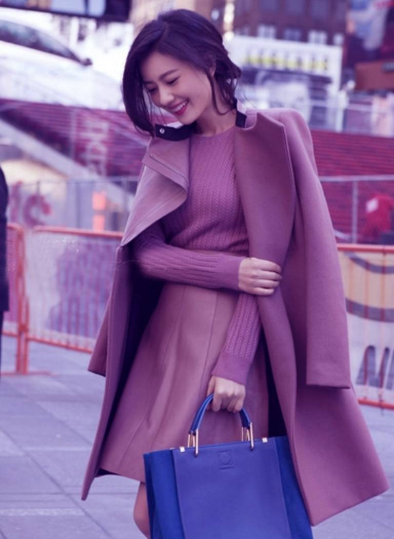 虽然紫色在秋冬的出镜率相对其他色系要低一些,但如今这种粉紫色作为秋冬时尚趋势之一,相信会以其独有的魅力得到众多女生的青睐。
