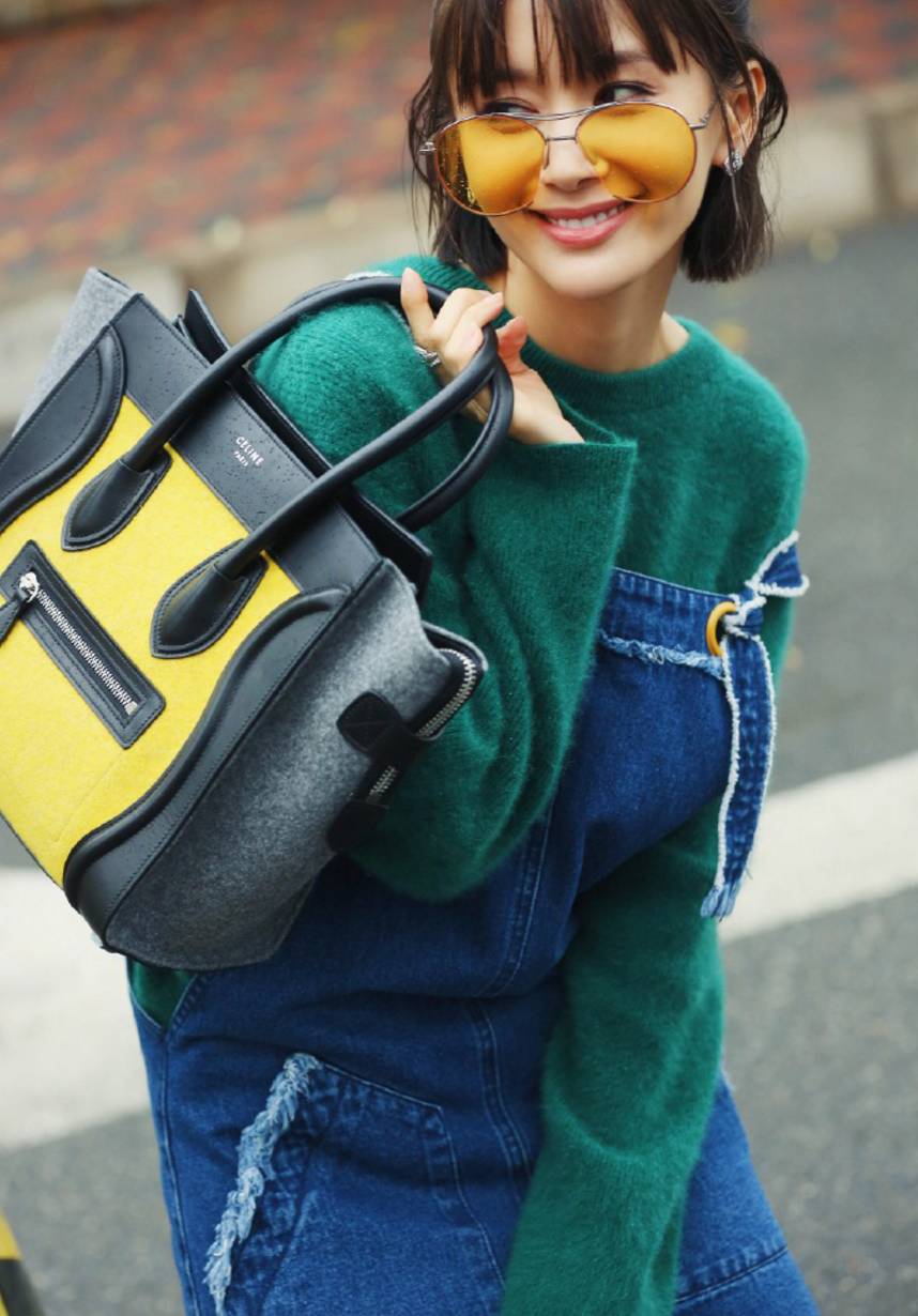 小个子星人的穿衣榜样王子文用葱翠绿毛衣搭配背带裤,复古嬉皮又减龄,活力四射。