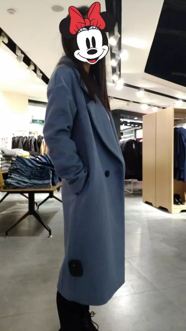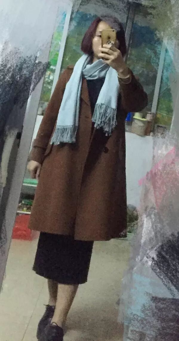 你这个拍照角度看不出大衣的具体长度,大概是到大腿中部?
