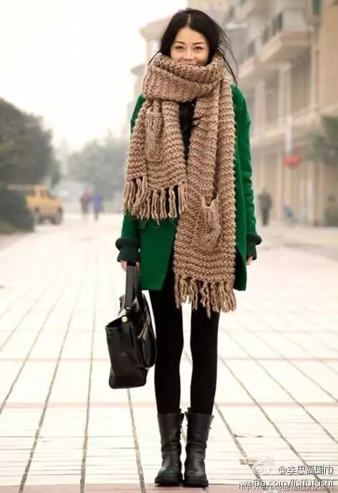 模特穿的是白色打底裤,可这里冬天实在太冷,好像街上没人穿白色裤子啊……