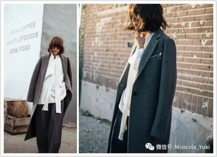 纽约时尚博主Diana Z. Wang身穿飘带白衬衫搭配竖条纹长裤和防水台短靴,中长款大衣披在肩上更帅气有型。上下皆宽松的单品做搭配,太考验衣品,小仙女们日常出街还是要谨慎选择。