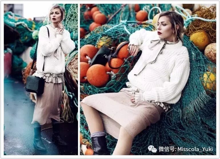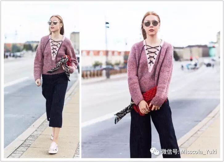 脖领处的飘带一定要长,垂坠在腰间飘荡,轻松营造出仙气十足的温柔感,可以是毛衣领子处的绑带或是一条围在脖子里的长纱巾。可乐的亲生好姐妹Yuyu大人的卫衣长带子同样很吸睛。