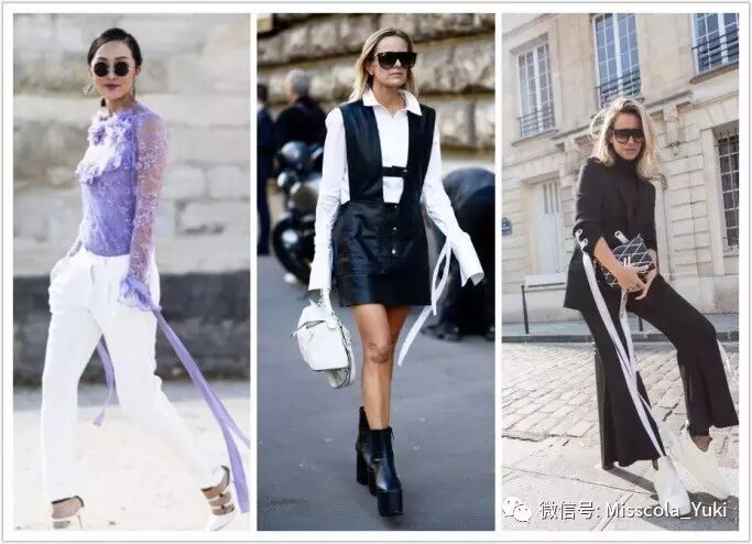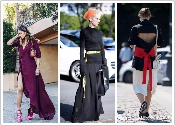 而达人们对飘带也是信心十足,一条简单的带子可以表达很多风格。飘带元素时常随风跃动在袖摆、衣襟、脖领、腰间等细节处,看似凌乱无意实则心机十足,简约冷淡中尽显洒脱气质。