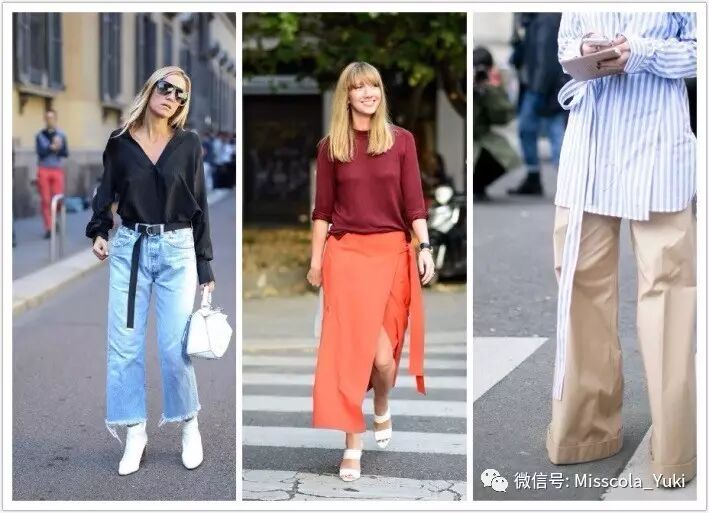 时尚博主Sara Donaldson身穿宽松系带白衬衫搭配光面阔腿裤,吸睛有型。少面积的露肉设计,让简洁白衬衫时髦个性,袖摆处的飘带帅气又性感。