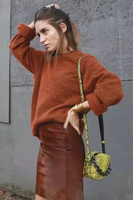 陶土棕所表现出的高级感和柔软的毛衣相结合,高贵又迷人。