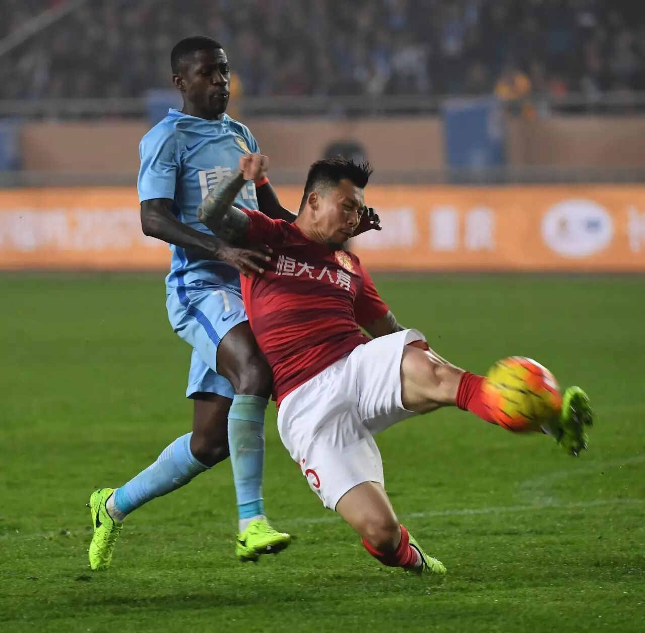 当然,足球是没法这么比较的,本来外战很嗨皮的苏宁,在内战赛场上变得弱不禁风。