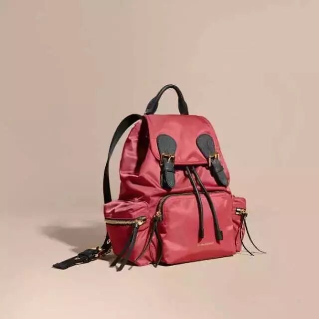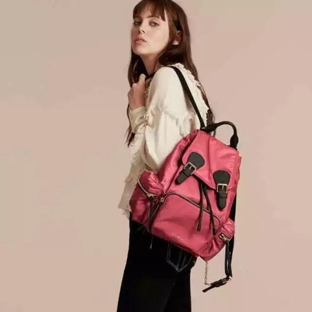 Burberry 近二年最成功的新包,一定是这款 Rucksack 双肩包,年初的时候只有黑色和酒红色,新一季又出了十几种新色,图中的玫粉色深得妹子们喜欢。
