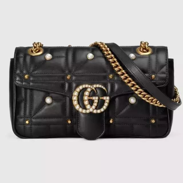 GG Marmont 链条包本来已经够美了,新款的铆钉和珍珠点缀更加让人惊艳,尤其是黑色款。