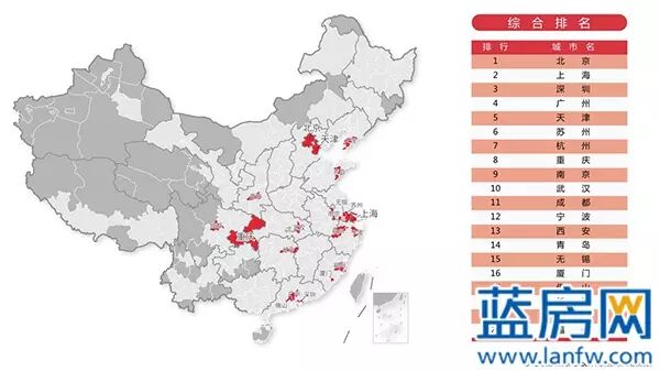 榜单显示,北京位列榜首,上海位居亚军,深圳排名第三。进入前十位的城市依次还有广州、天津、苏州、杭州、重庆、南京和武汉。