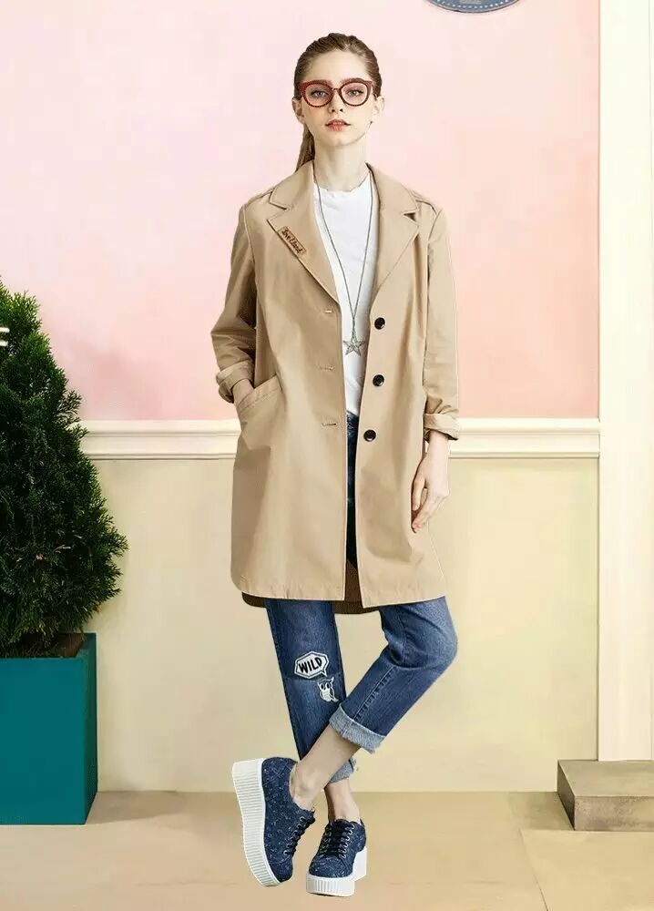 中长款风衣, 简单大气的版型, 抛弃冗杂琐碎的修饰; 小巧又别致的徽章, 时尚有趣又不失设计感。