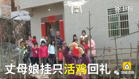 近日据某报道称,广东一位女婿嫌传统红包太普通,灵机一动,便用无人机把红包送给岳母。他的岳母则回赠一只活鸡,绑在无人机上给女婿送回去。