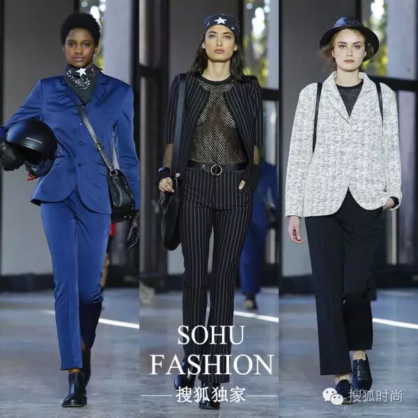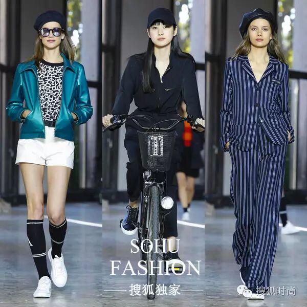 本季,设计师融入的年轻元素体现在渔夫帽配乖巧的学院套装,中长款风衣内搭长针织裙,棒球帽连体抽绳运动服,清一色的低帮类Blazer鞋,甚至连轻型矫健的校园单车都骑上秀场,可见设计师图谋年轻消费者荷包的决心。