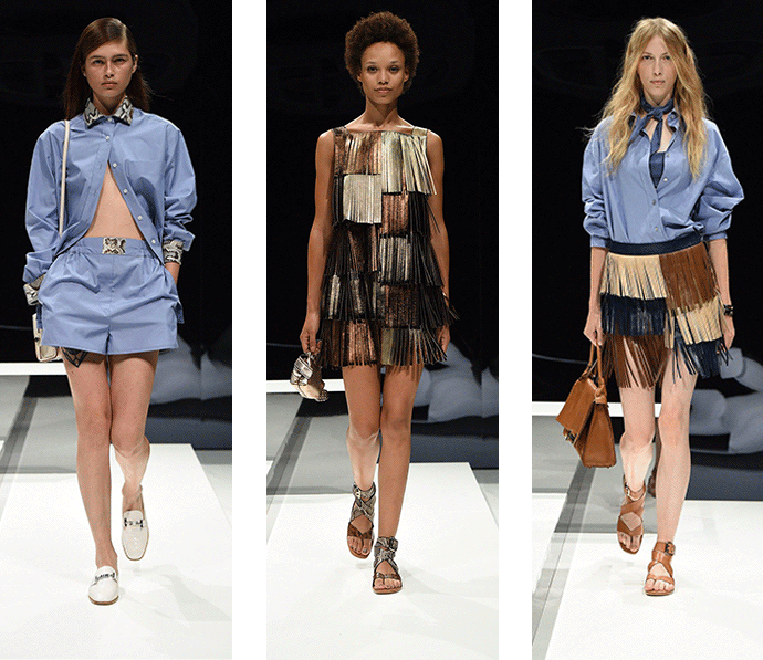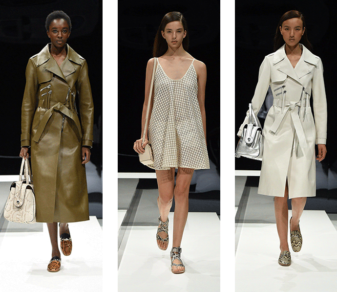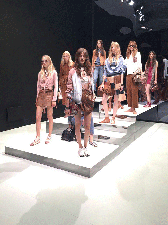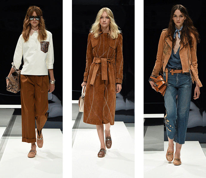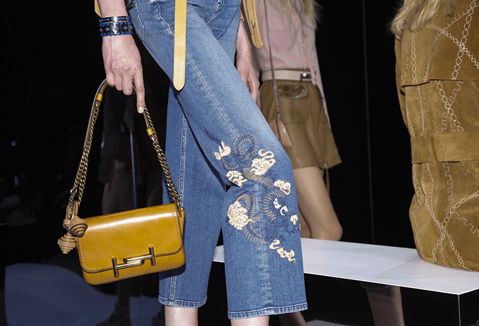 经典的长款风衣,麂皮夹克、流苏短裙这是 Tod's 对都市女性的新诠释。时髦和随性在模特的游走间显露无遗。既不过分张扬,又性感的恰到好处。
