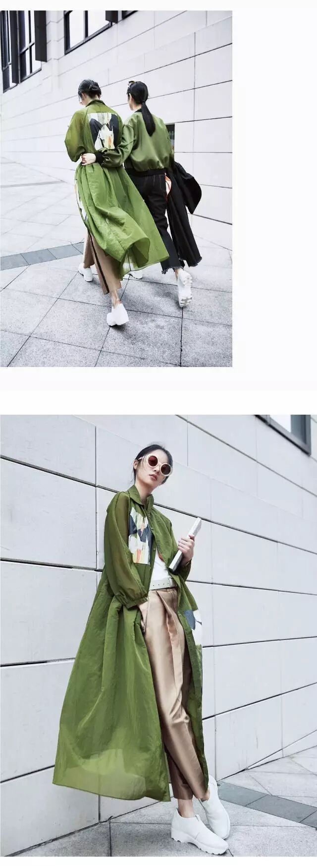 长款风衣与飞行夹克帅气Chic,再契合今年正兴潮的军绿,率性硬朗。两件不同的款式闺蜜即使互穿都不会有违和感,同时也具有保暖性,非常适合秋季,独特的抽象花稿和型格配饰点亮整体造型。