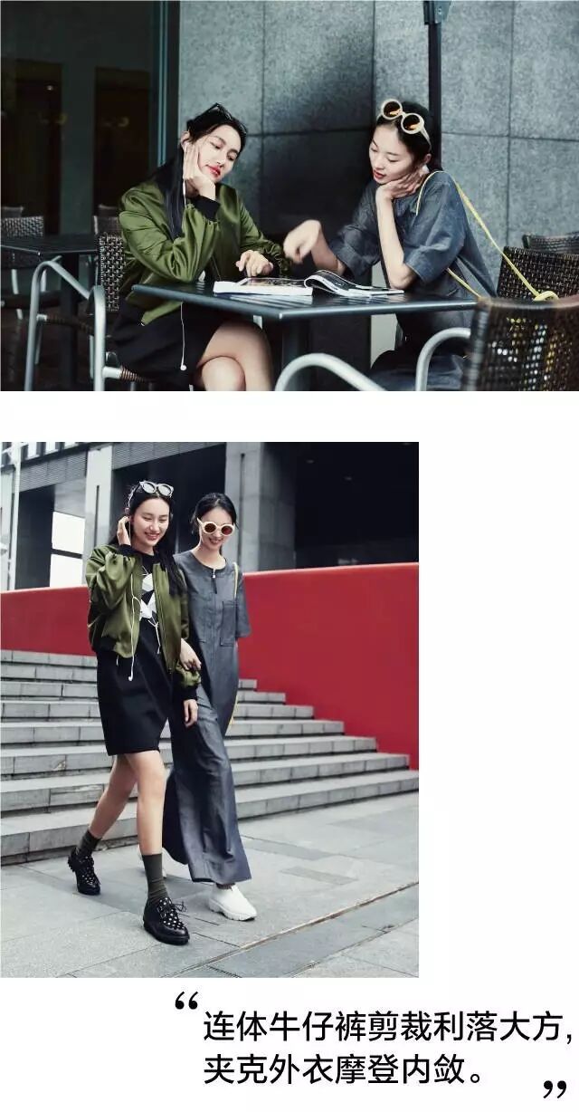 剪裁利落大方的连体牛仔裤,低马尾系上繁花丝巾打造出别具一格的造型LOOK,浓郁的都市摩登感一涌而来,让飞行夹克装及精巧可爱的水桶包显得更为活泼率真。