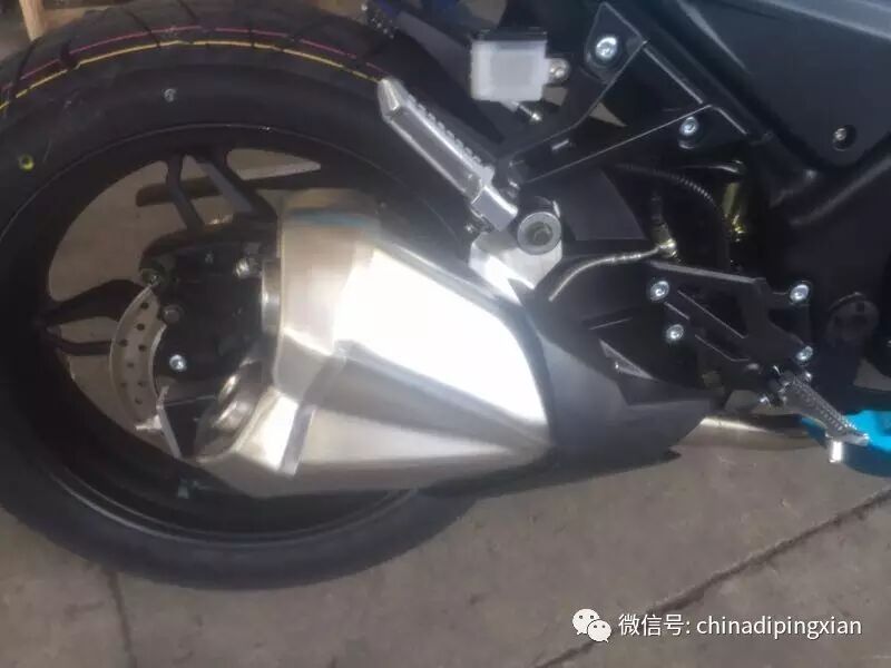 枭风二号采用的大地鹰王350双缸水冷发动机,整体的外观与川崎的车型的外观非常的相似。很重要的就是排气管方面,采用的川崎排气管,声音方面是非常好听的。