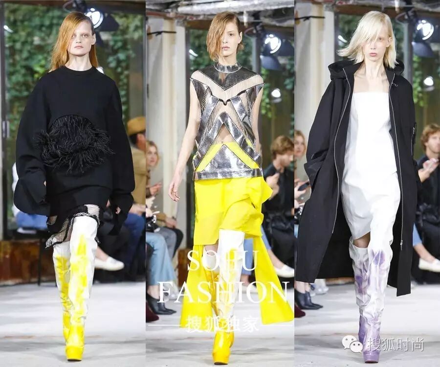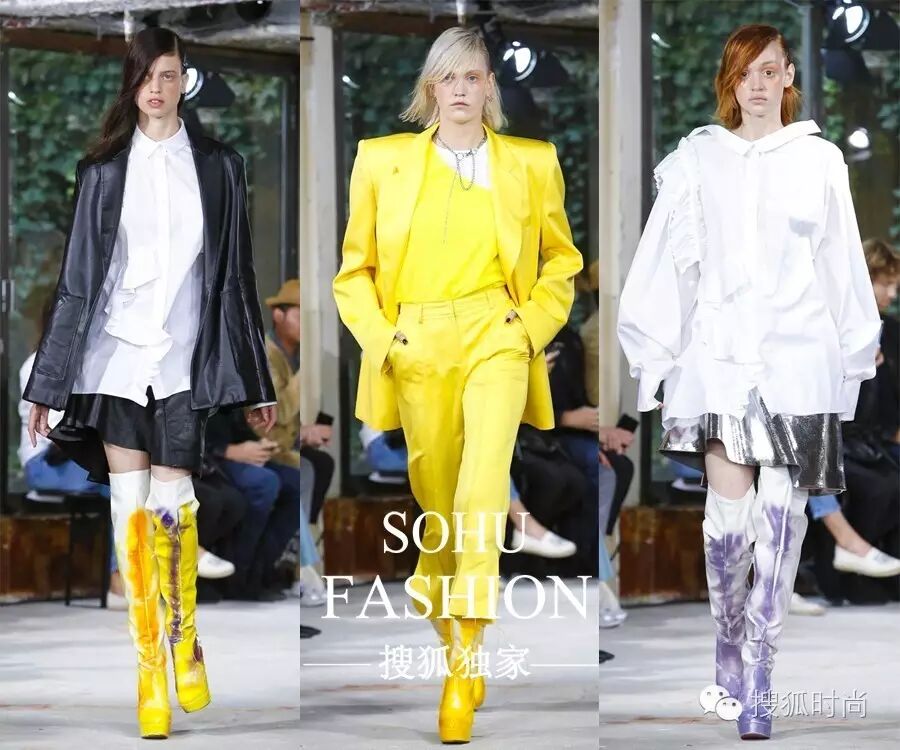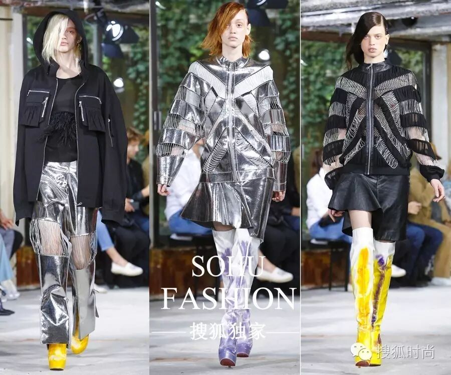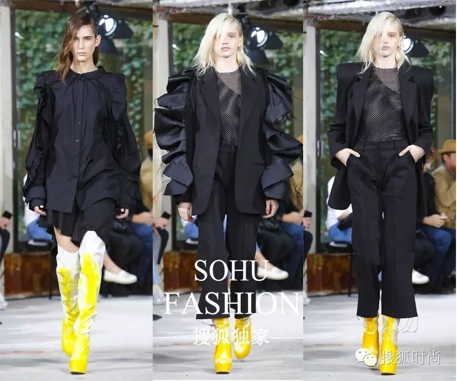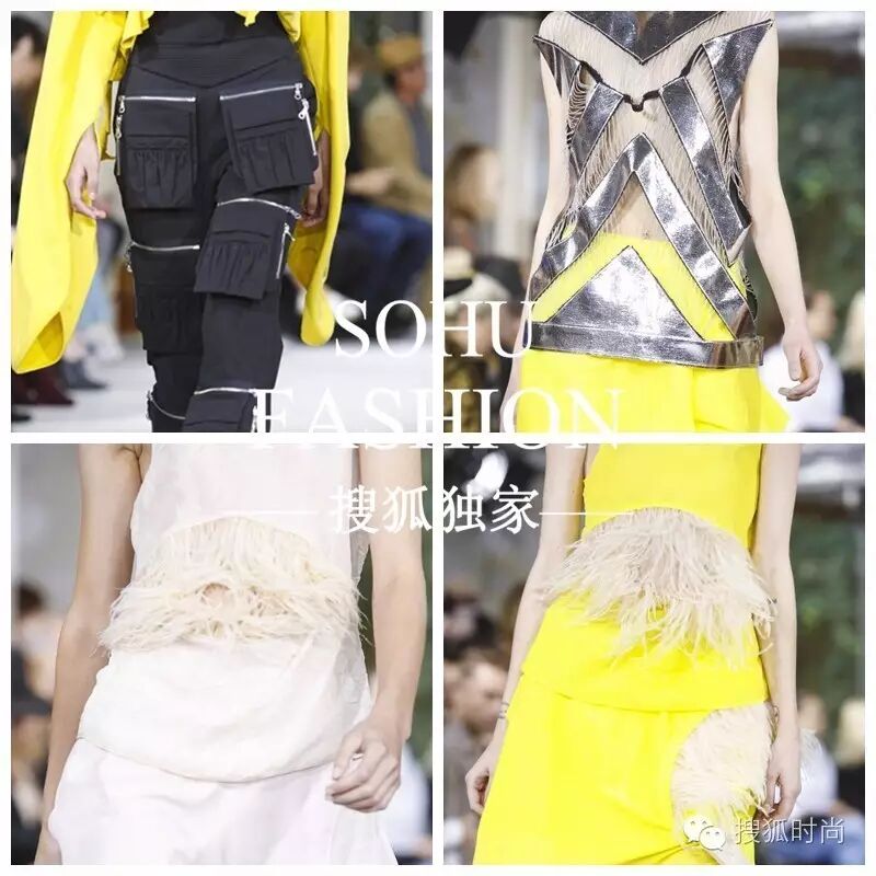 这位在巴黎秀场上大放异彩的华人女设计师,用高亮度、高饱和度的柠檬黄点亮整个系列,其间,科技感的金属银与暗沉的黑色大面积地进行造型构架,设计出廓形宽大、犀利清冷的长款风衣及帽衫夹克。
