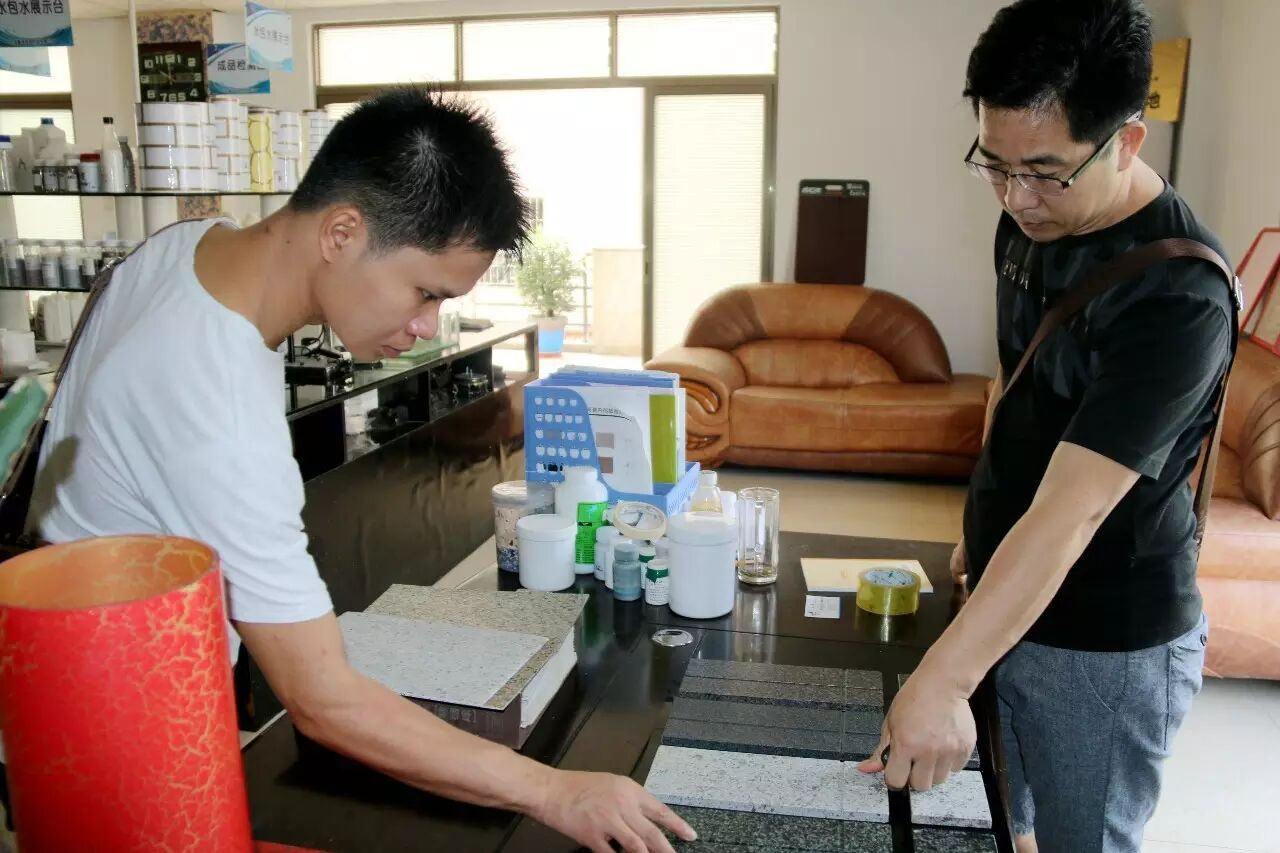 热烈欢迎广州廖总、湖南李总来鑫浪交流、体验700水包水多彩体系技术!