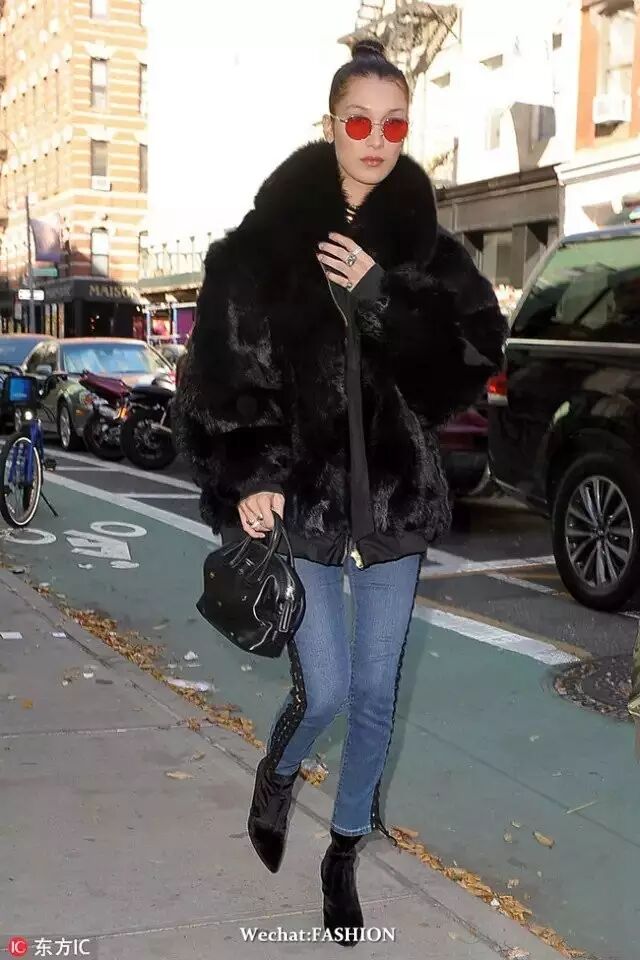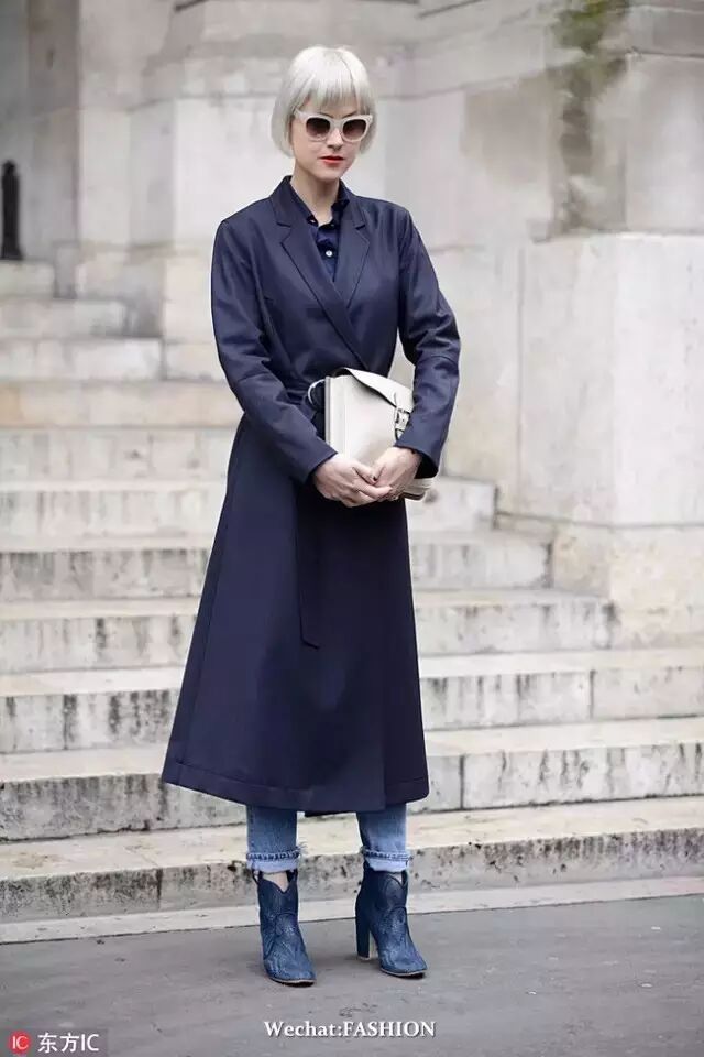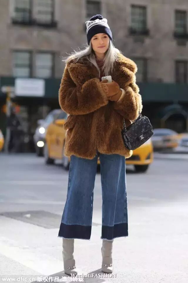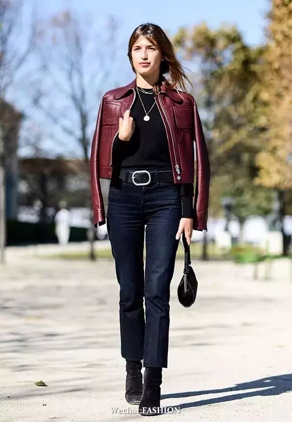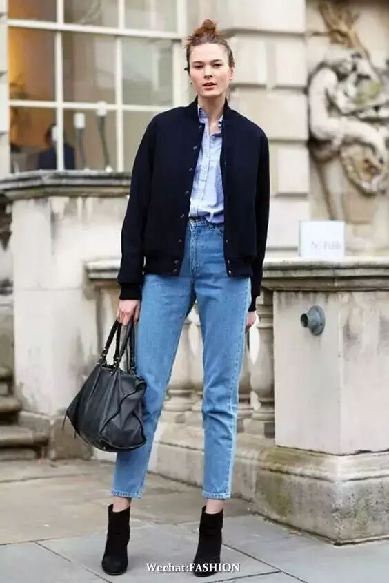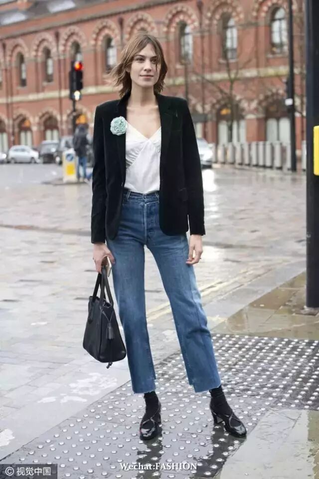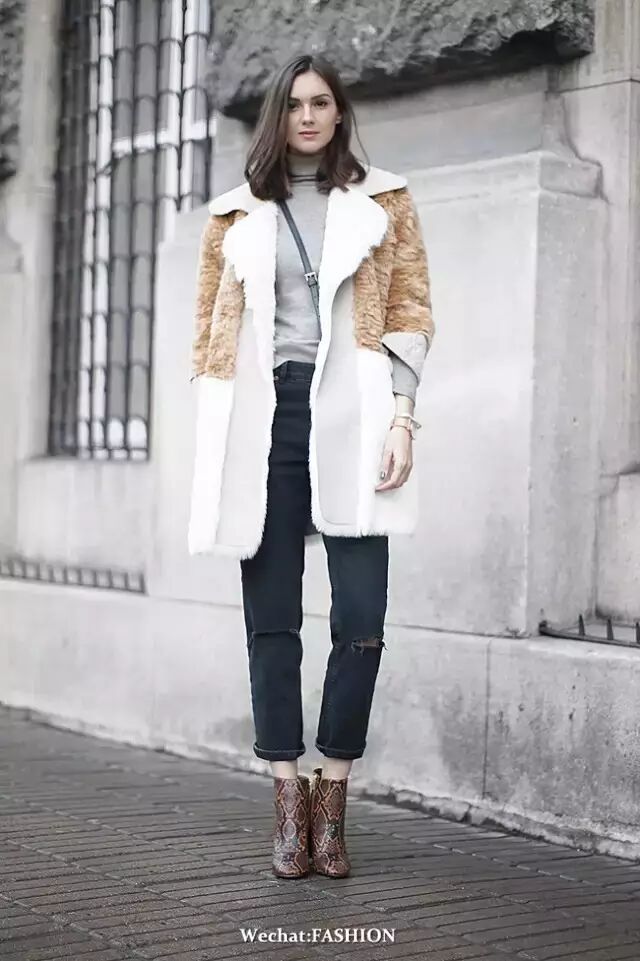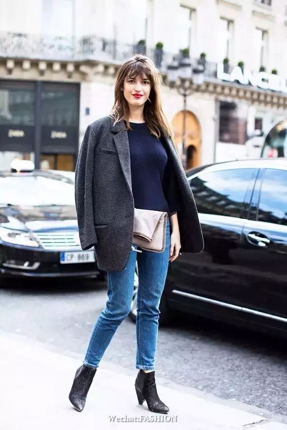 今年流行的下摆有些毛糙小流苏的直筒牛仔裤,跟短靴是绝配。