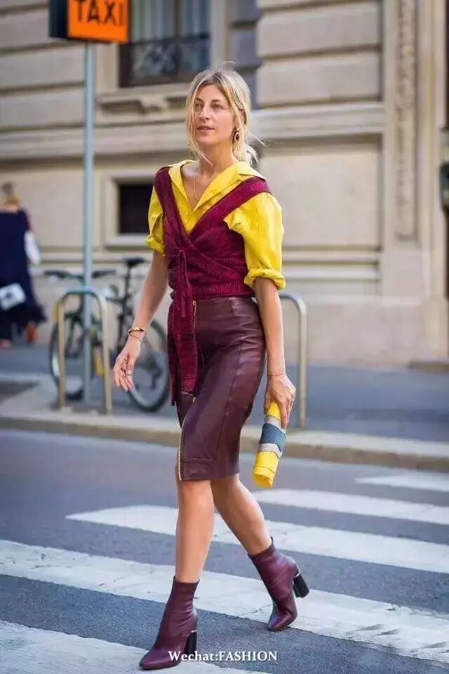 及膝裙加上短靴可以拉长比例显高显瘦。包臀裙可以演绎性感,伞裙或百褶裙能演绎柔美。