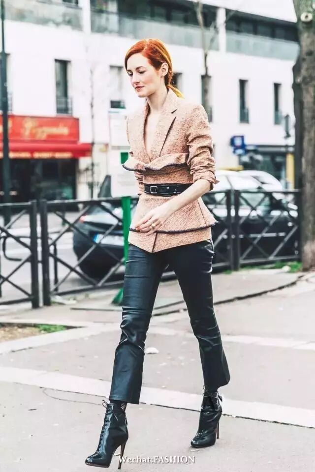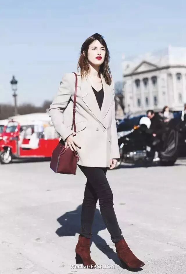 短靴与紧身裤一直都是绝配,如果想显腿长,最好选择靴子与裤子同色系,轻松打造大长腿的既视感。