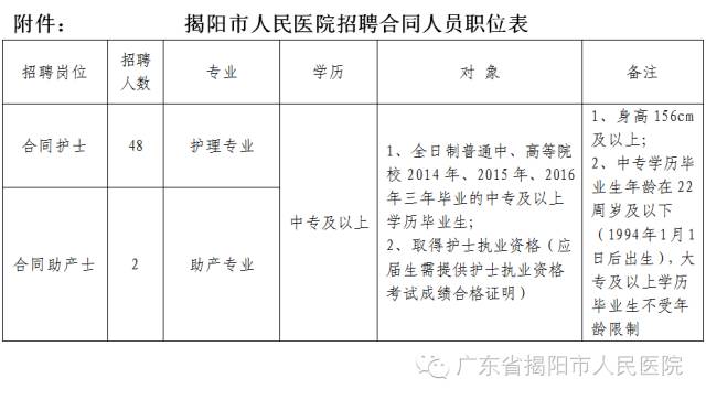 揭阳市人民医院因业务发展需要,面向社会公开招聘合同护士48名、合同助产士2名。