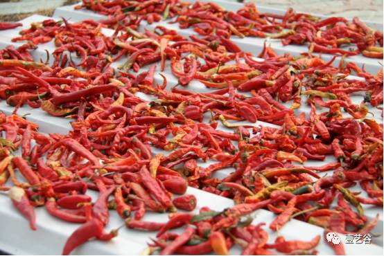 把新鲜摘的辣椒洗干净后晾干,再拿到太阳底下大约晒一周左右,辣椒就能晒得很干了。然后就可以收藏起来,等到需要时,把干辣椒拿出来做水煮鱼、麻辣豆腐等菜式,说得我都流口水了,爱吃辣的小伙伴们快来壹艺谷品尝一番吧!