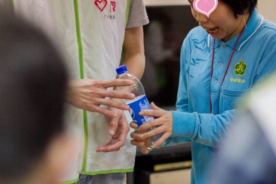 接着,志愿者还玩了“听音乐传瓶子”的游戏,一边放着音乐一边有秩序地传瓶子音乐一停瓶子在谁的手上谁就要上来作自我介绍,游戏课程不仅提高了学员学习积极性,还充实了学员的兴趣爱好。