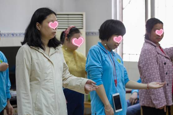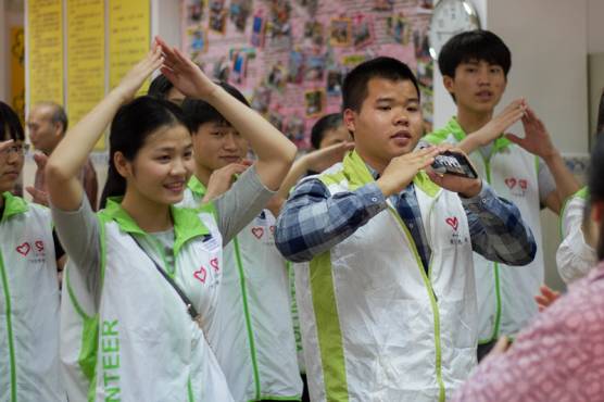 志愿者认真教学员《感恩的心》手语舞,学员每一个动作跟音乐,边唱边手语表演。旋律优美的歌曲、歌词虽简短明朗,却有很深的寓意。不仅提高学员学习的兴趣,还在学习中加深对亲情的理解。