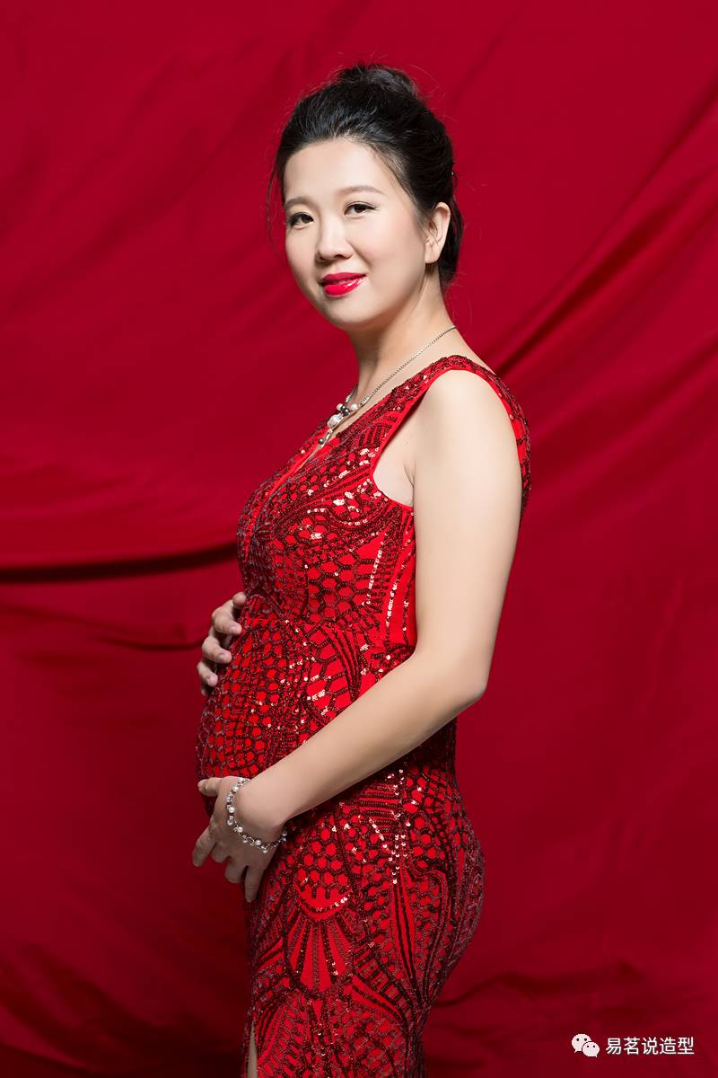 特别是将满头秀发做成高高的复古盘发,佩戴优雅的项链和手链,身着BLINGBLING的低胸裹身礼服,完全是孕妈版的美人鱼~