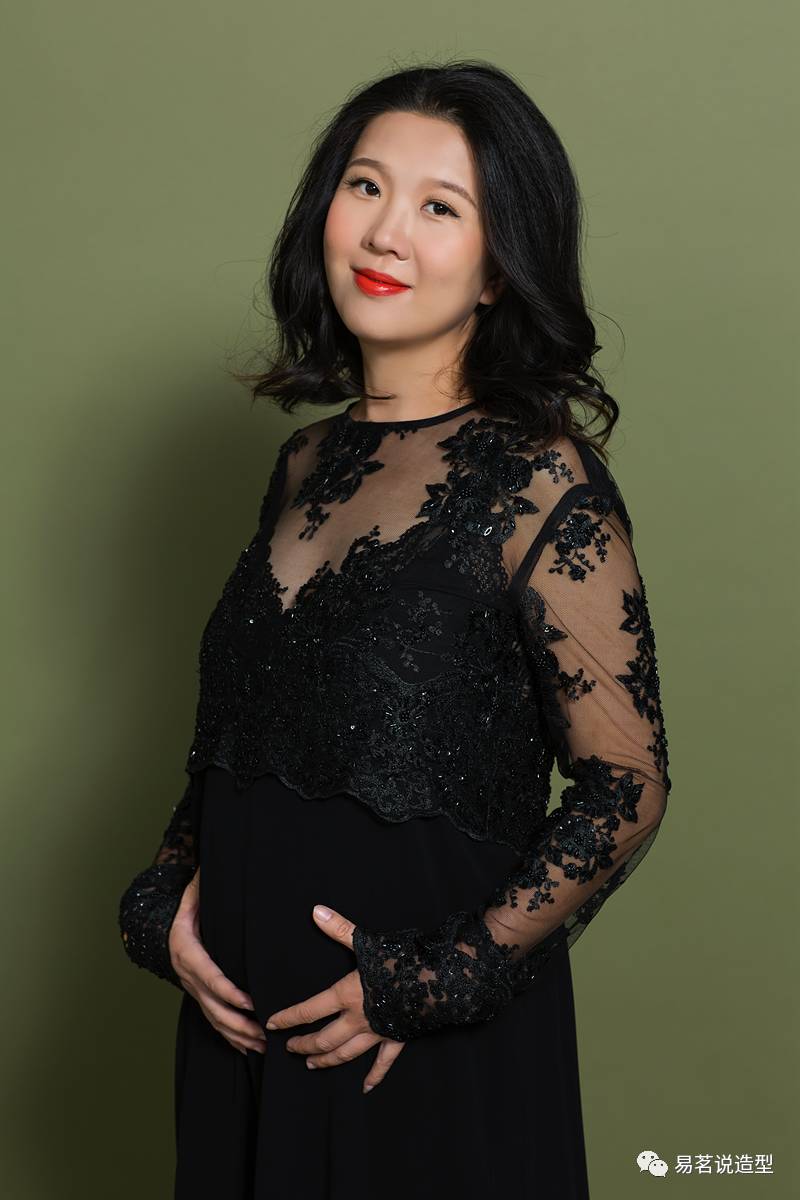 发尾用直板夹出自然的纹理感,轻柔地搭在双肩,再配上黑色蕾丝睡衣风,一字高跟凉鞋,孕妈妈特有的性感味道呼之欲出~