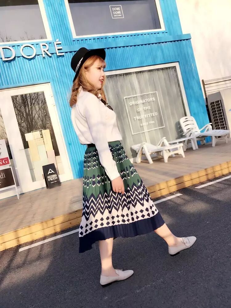 波普风格的百褶长裙~