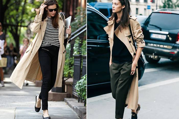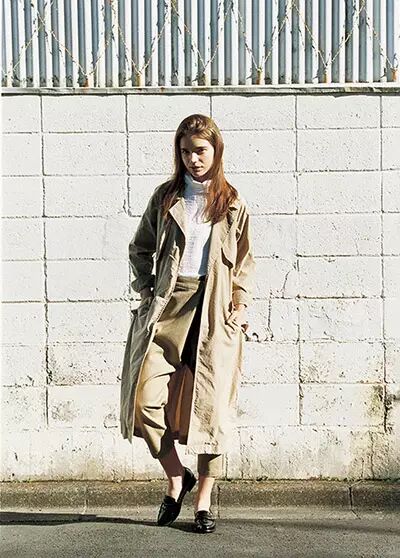 在选择大衣上,H型适合绝大多数人。但风衣的话,亚洲人,尤其是个子娇小的人最好选修身剪裁的。这样才不会穿出一种穿了老爸的外套的感觉。还可以试试买小一码。因为我们其实很少会在风衣里面穿很多衣服。当然,前提是肩膀部位不臃肿不紧绷。