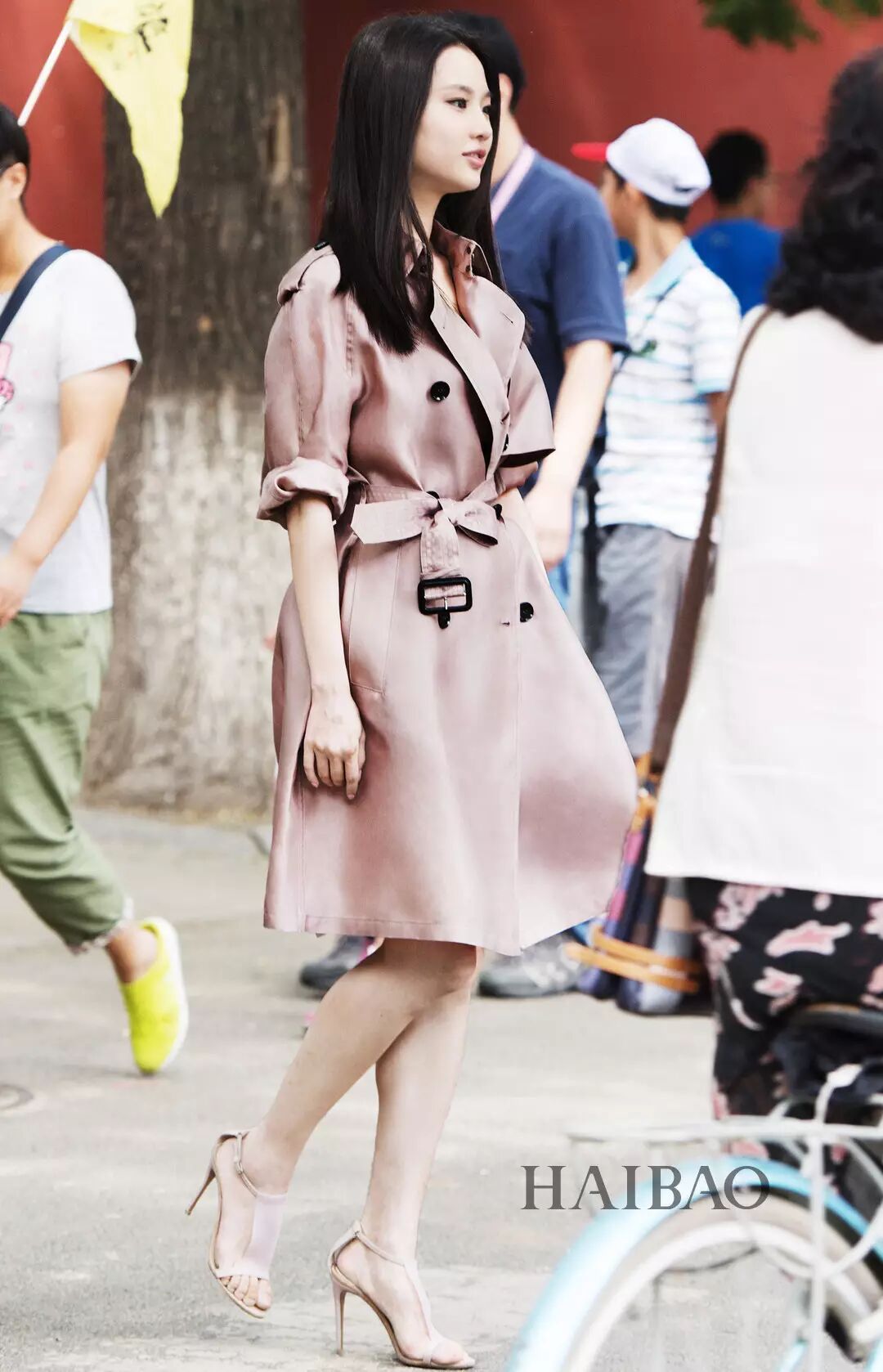 最佳长度是在大腿中部到膝盖左右长度的。既能遮肉,还能露出比较纤细的小腿部分。瘦高纸片人钟小姐的风衣,也大都是这个长度。