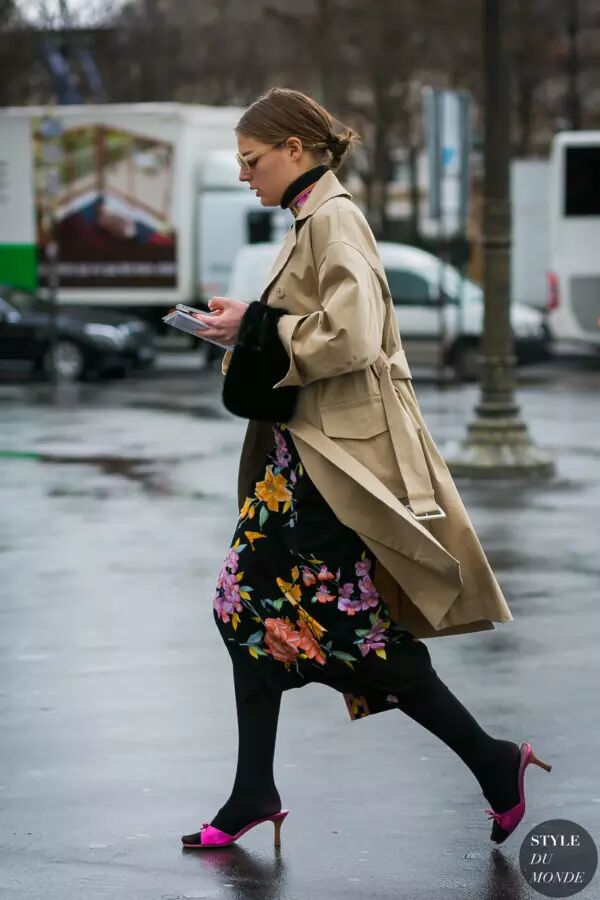 超长款风衣最近几季一直很火,而且够实用,可以更好地为你遮风挡雨。个子不高的人想买的话,最好是选腰线高一点的,整个人才会显得挺拔。