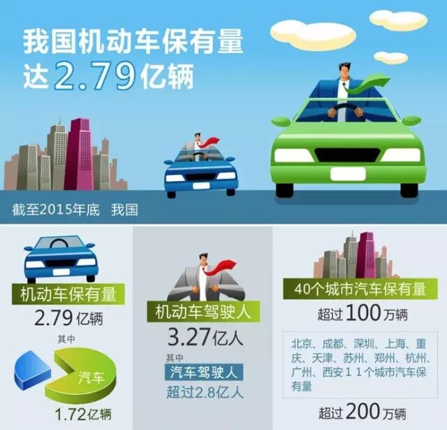 驾驶私家车已经成为很多人的日常出行方式,但城市中机动车的快速增加也带来不少问题,不少地方都在酝酿实施相关的限制措施。那么,全国机动车的保有量到底有多少?其中私家车又有多少?,截至2015年底,全国机动车保有量达2.79亿辆,其中汽车1.72亿辆,汽车新注册量和年增量均达历史最高水平。
